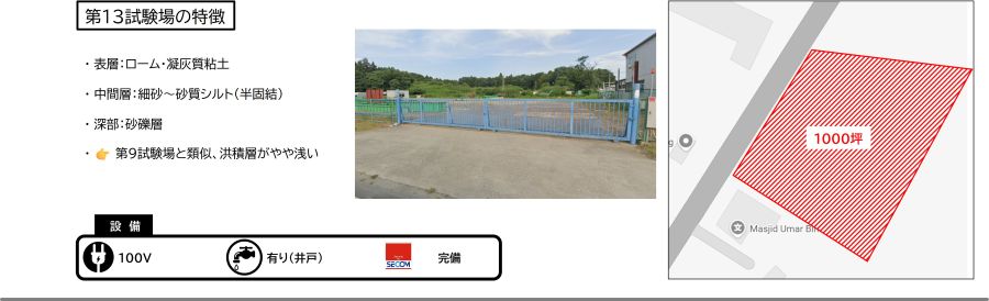 大型現場実験のための屋外試験場や大型圧縮試験機(10,000kN)をご提供しています。