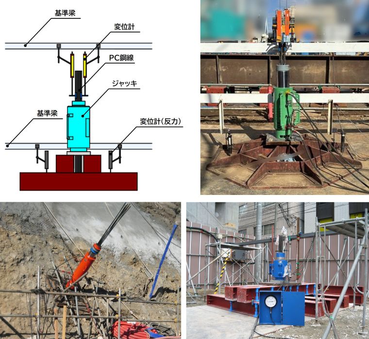 地盤アンカーの引張り試験は、常時荷重が作用する時の安全性、繰返し引張り力が作用する時の特性を確認する試験で、全ての地盤アンカーに対して調査を行います。