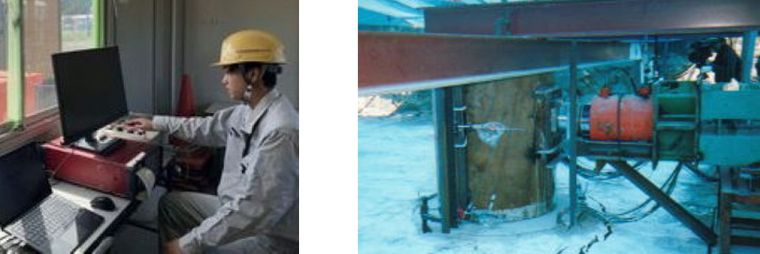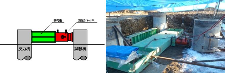 水平載荷試験は、鉛直に設置された杭に水平力を加える静的試験です。